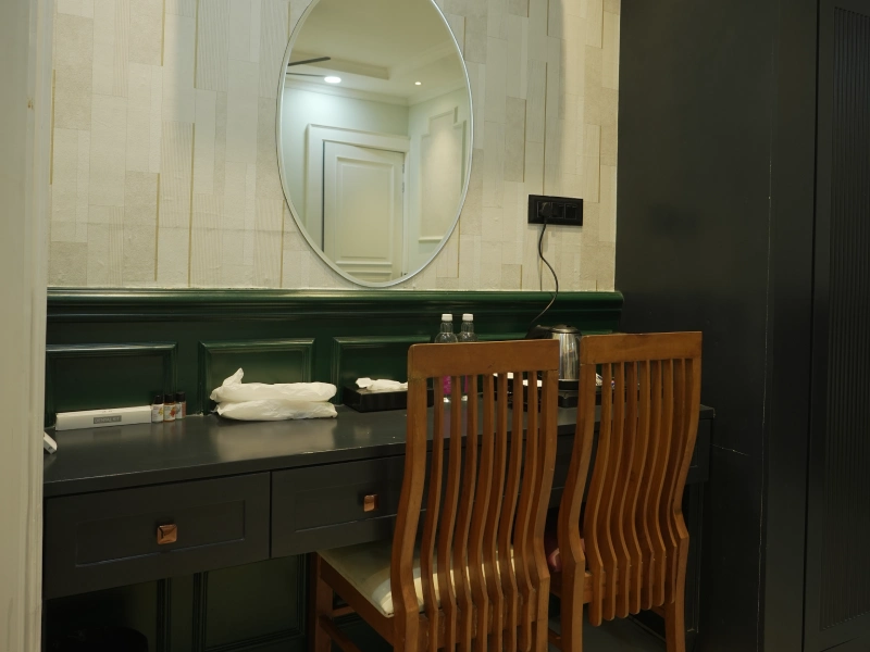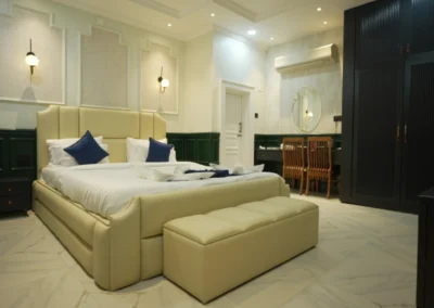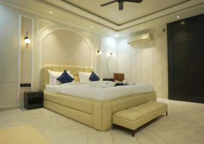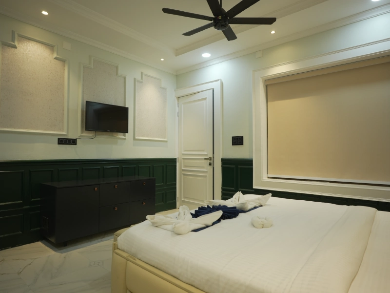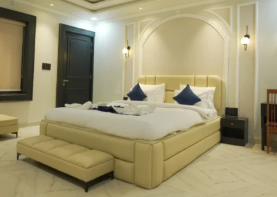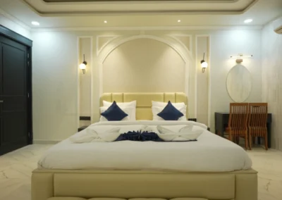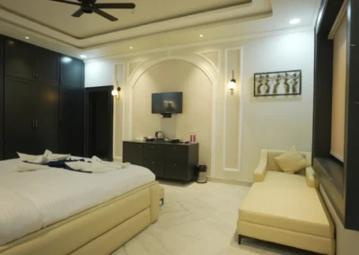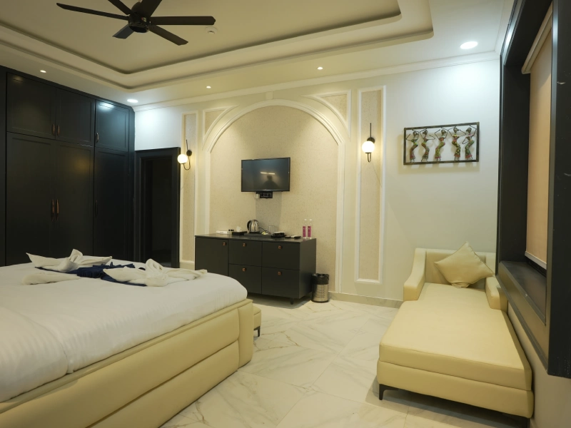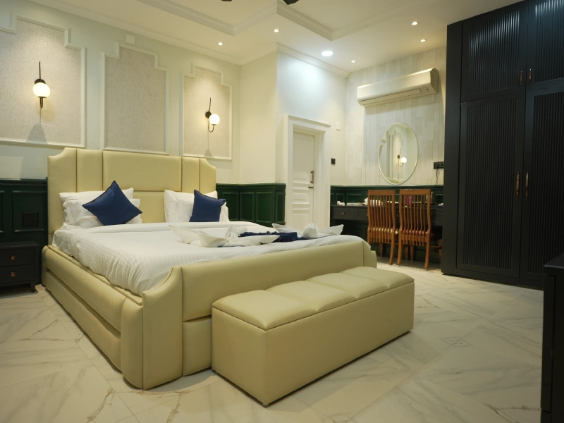 Our Super Deluxe Rooms feature well-designed interiors, comfortable furnishings, and modern amenities to ensure a pleasant stay. Guests can enjoy common swimming pool access for leisure and a kitchen facility, offering flexibility and ease—especially for families and long-stay guests